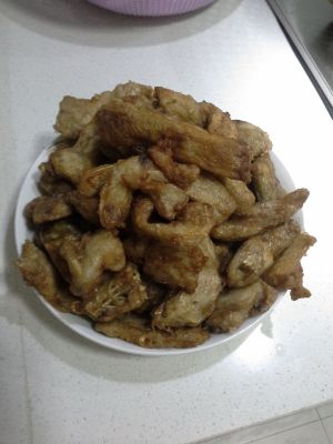 鱼骨鱼头腌好后放油锅去炸成金黄色放起
