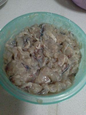 把鱼片加入腌料包和适量的料酒腌制10分钟待用