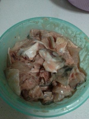超市买包酸菜鱼料,用里面的腌鱼料把鱼腌一会,最好把鱼骨跟肉分开腌
