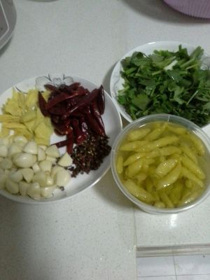 然后再倒开水下去煮,然后把泡椒跟其它的那些七七八八调料一起放进去盖锅盖大火煮15分钟,调料这些东西自己把握用量