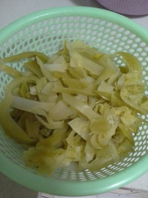 酸菜切好清洗几遍,然后放去锅里煮一遍过凉水放起