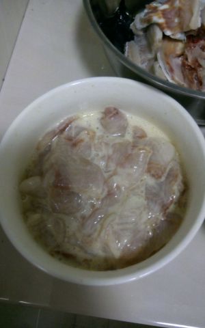 加入盐,蛋白液,玉米淀粉,料酒,色拉油抓匀。