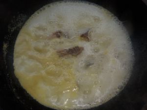 炒好之后到入鱼汤鱼骨,盖上锅盖大火煮五分钟。
