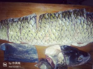 买回来的草鱼洗干净,鱼头另放,鱼身切成一片一片的