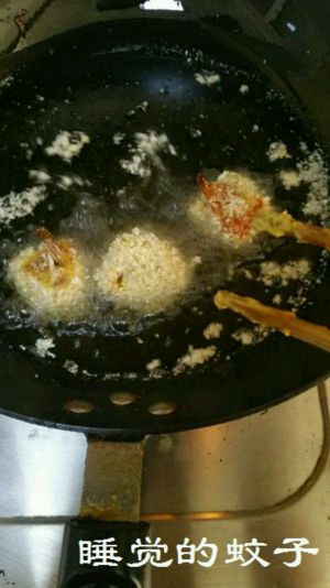 把香蕉和沙拉酱在料理机里打成香蕉湖,炸好的虾子裹上香蕉湖,然后放在土豆丝裹一下就完成了。