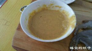 拿一只大碗放六勺面粉、三勺生粉、一勺吉士粉、半勺泡打粉和一个鸡蛋分三次加水打匀,另起锅加油烧至六成热,把基尾虾裹上面糊炸至两面金黄捞出。