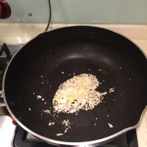 锅中放少许油,放入葱蒜末炸成金黄色。