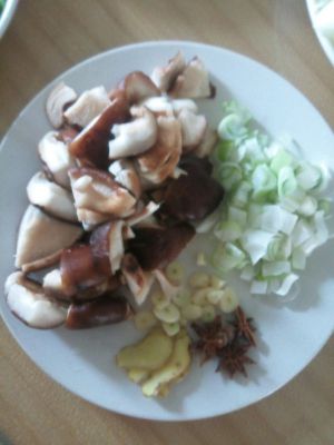 炒锅到油烧热爆香葱姜,大料和桂皮。