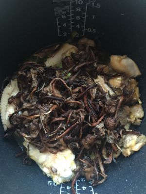 添水没过鸡肉蘑菇,电饭锅煲25分钟(根据个人电饭锅炖肉时间自己调整)