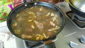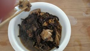 加入榛蘑炖20分钟,临出锅10分钟前加入,提前泡好的粉条,再炖那10分钟