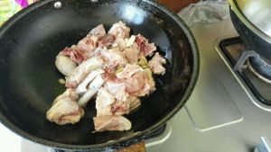 放入鸡腿翻炒。