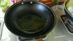 热锅凉油(如果你选的鸡是当年的鸡正常放油就行,两年鸡则少放油,因为下一步炒鸡时,老鸡会出很多油)
