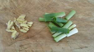 放入葱段 姜丝爆香。