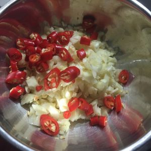 热锅下油,炒香姜片.蒜粒和辣椒粒,然后加包菜片,翻炒至包菜快熟的时候,加入老陈醋,鸡粉和糖适量,再翻炒一下下,下麻油。搞定