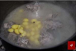 当排骨炖到七八成熟时加入白果,再继续用小火将排骨炖至酥软。炖好的排骨出锅前加入盐调味即可。