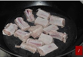 锅中倒入油放入葱姜排骨翻炒1分钟