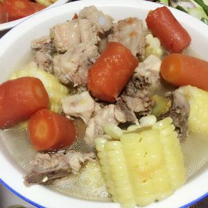 砂锅的水烧开后放入胡椒粒和姜片,在依次倒入胡萝卜玉米排骨,大火炖15分钟然后小火30~45分钟。注意火候,最好不要把盖子盖严了。不然汤水要喷出来,留个小缝就可以了!