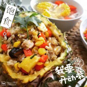 哇撒!盛好!菠萝可以最后出锅的时候放进去翻炒一下,或者直接搭上去。