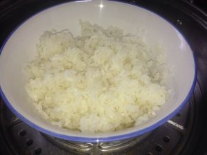 糯米要泡两小时以上,泡的水不要。然后蒸20分钟就熟了。这个是蒸好的。
