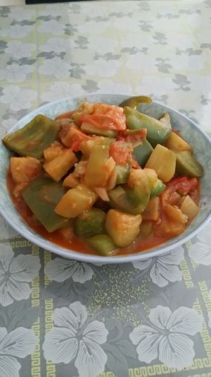锅里留少量底油,先把番茄酱和蚝油放入锅中,把西红柿炒出汁水后,把炸好的茄子放入锅翻炒均匀出锅