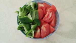 番茄菜椒小炒出汁儿,放入茄子翻炒