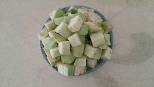 茄子切成滚刀块,然后把它们均匀的裹上干淀粉