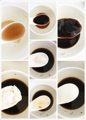 用料酒 酱油 蚝油 盐 糖 水 淀粉 调成酱汁备用