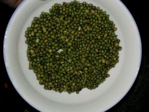 汤锅另外加入清水,倒入排骨绿豆,折耳根大火烧开,小火慢炖90分钟,炖好加入适量盐