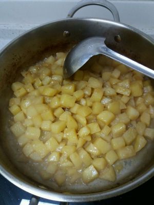把土豆切成小块,热锅凉油,把香葱爆一下味,然后倒入土豆块(切完之后用水冲洗一下,洗掉一部分淀粉,防止粘锅),炒个一分钟左右,倒入排骨汤,然后炖就行啦!排骨汤收汁了土豆还没熟怎么办?倒点水,继续炖!