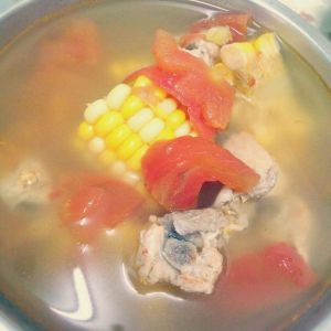 排骨先加少水煮去血水,倒去。 先将排骨,玉米姜下锅大火煮开十五分钟,调为小火煮半个小时左右,加去适量的盐,也可加一点胡椒粉。再到入番茄煮十五分钟。