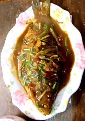 煎好后加适量水煮一会,水加到鱼没一半就差不多了,下生姜,红辣椒