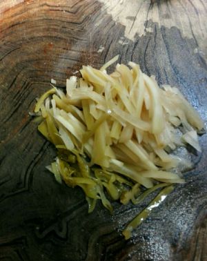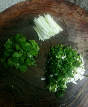 装盆,撒上大葱丝,芹菜叶,葱花(拍照时忘撒了),即成