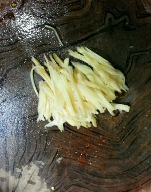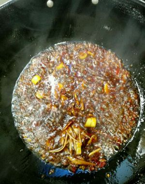 下蒜片爆香,又下豆豉,泡姜,泡椒炒八成干水分,下入豆瓣炒出红油,下花椒白糖料酒炒香,再下泡菜,炒变色(略白)