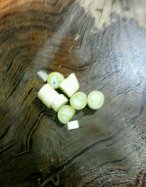 鲫鱼一条,将鱼洗干净,去除内脏,刮去肚里的黑斑,要不有淤泥味。将鱼身用刀斜着划上数刀,(如图)然后撒上姜丝、葱白,淋上黄酒,腌制十分钟,去除鱼腥味。
