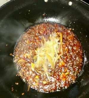 豆瓣酱变色之后,放一饭碗多点的开水,水沸腾之后,放下鱼,大红辣椒丝,姜丝,继续大火烧开汤汁,期间将鱼翻一次身将可以了,煮三分钟左右,让鱼彻底入味即可,最后放下葱段,鸡精调味即可。