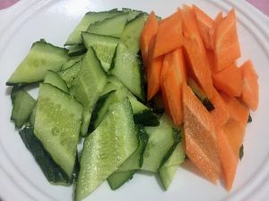 加入木耳(一定要沥干水分,避免溅伤)翻炒片刻加入胡萝卜至木耳七八成熟加入黄瓜继续翻炒