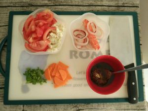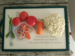 1.准备食材:大蒜切沫、圆白菜切丝、西红柿切小块。