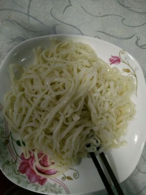 面或米粉冷水下锅,水开后,把面捞起放入冷水中浸泡一小会,鸡蛋另起油锅,翻炒备用