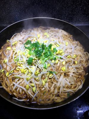 洋葱炒熟 放入控干水的面 翻炒均匀 放酱油上色 盐 南德 适量 放辣椒酱 拌匀出锅