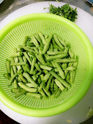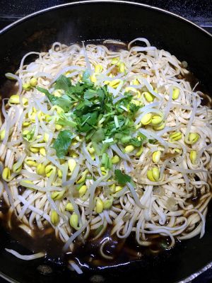 依旧小火翻炒,放点酱油辣椒酱,炒匀后起锅,撒些芫荽~