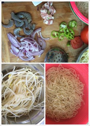 豆芽,面条用开水煮过一遍,其他菜类洗干净切好