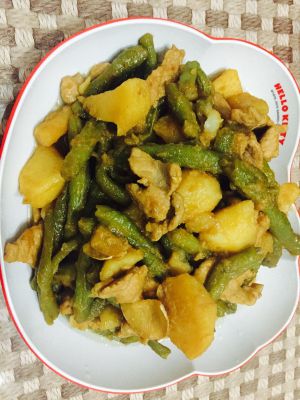 菜洗干净,豆角掰成段,土豆切块,肉切片