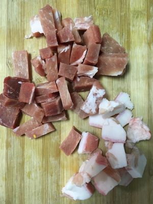 五花肉切块,个人喜欢把肥肉煎的焦焦的,所以肥瘦肉分开了。