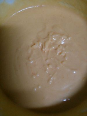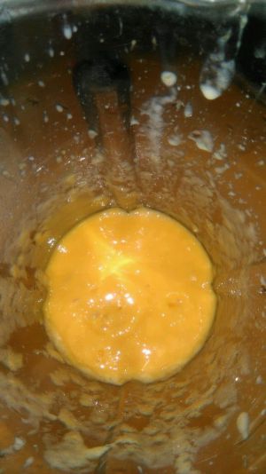 将冷藏好的芒果泥倒入蛋液中,用料理棒均匀的拌匀成冰淇淋糊。然后放冰箱急冻室,每隔一小时就拿出来搅拌一下,这样重复四次(这是冰淇淋做出来口感是否细腻的最关键的步骤,真的不能省)