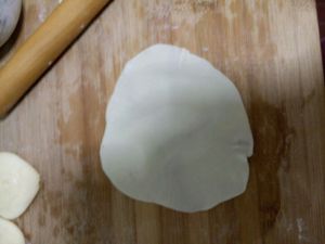 饺子皮赶成薄薄的,抹上油,均匀撒盐