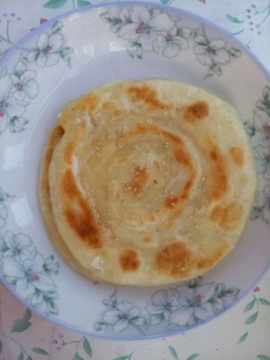 烧热平底锅(无需放油),烙到葱油饼两面金黄熟透,即可