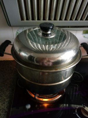 将容器在冷水锅中中小火蒸,10分钟后直接放小火,切忌揭开盖子