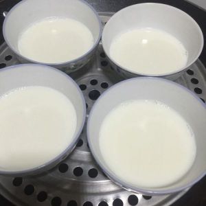 奶这就蒸好了!上面可以放一些喜欢吃的水果等!奶最好放凉后冷藏后再吃!