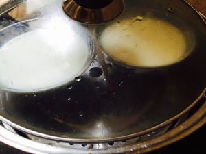 倒入器皿里,舀去泡泡,蒸锅蒸15分钟左右。