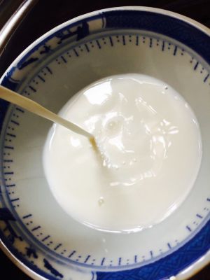把放凉后的牛奶倒出,倒的时候要注意,先用勺子沿着奶皮和碗的接触处开一小口